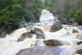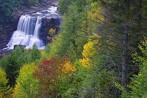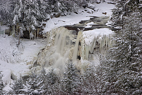 scene. Just above the falls, the river turns, ensuring a forested background.