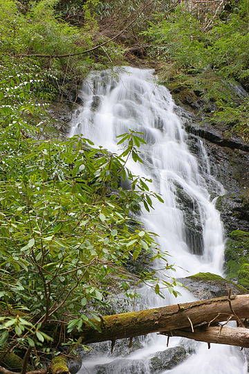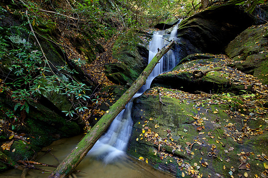Auger Fork Creek cascades down a steep rock face just above the entrance of Maple Spring Branch.