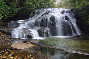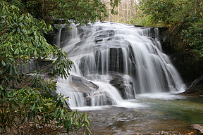 | Walking Directions | Walk south on the east side of NC 281 to the second guardrail (marked 202+20). A faint path (not a maintained trail) to the falls begins behind the second guardrail. The path begins with a cement drainage. After the drainage, head downhill and in the direction of the road until you reach the Thompson River near the top of White Owl Falls. This area has heavy undergrowth. |