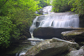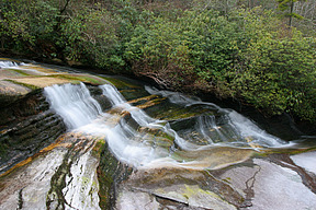 Greenland Creek falls over several curved ledges, producing a fall that looks quite different from each viewpoint.